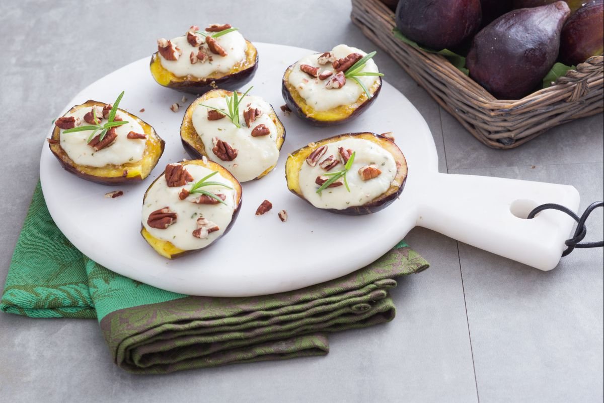 Figs with Pecorino: a combination that dates back to ancient times. Definitely a rustic tradition and a rediscovery by great chefs today. The union between the sweetness of the late summer fruit, perfect for a classic dessert or served as a starter along with one of the most flavorful and tasty cheeses, featured in main courses or simple spring appetizers paired with Broad beans, pecorino and bacon for example. How to pair them to create a perfect dish to serve as an appetizer? Our recipe is very simple but offers a rich and unique flavor! Grilling the figs will give a slight caramelization of the sugars, which will be contrasted by the strong taste of Pecorino. The aroma of rosemary and a sprinkle of pecans will complete the dish, making this easy and quick appetizer of figs with pecorino truly gourmet!
