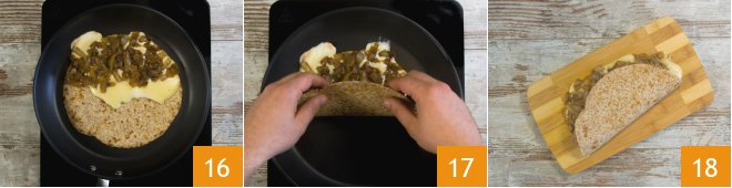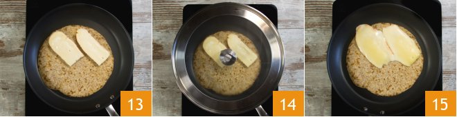 Place the slices of Taleggio on just one half 13, cover with the lid 14, and let the Taleggio melt over low heat 15.