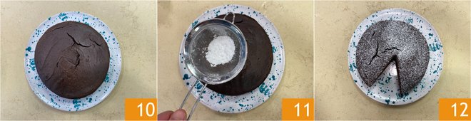 When baking time is up, remove from the oven and let the cake cool in the pan before unmolding 10. Finally, garnish with powdered sugar 11. Your flourless ricotta and cocoa cake is ready to be enjoyed 12!