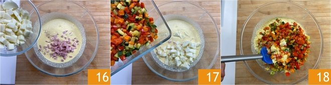 And then also the provola 16. Finally, add the vegetables 17 and mix well 18.