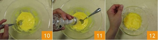 It should be smooth, thick, and creamy 10. Then add a pinch of salt 11 and cover with plastic wrap in contact 12.