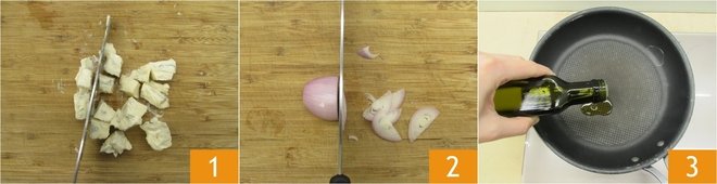 To prepare garganelli with asparagus and gorgonzola, dice the gorgonzola and keep it at room temperature 1. Clean and slice the shallot 2. Heat a tablespoon of oil in a pan 3.