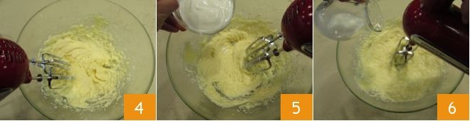 Work the mixture until they are completely absorbed 4. With the mixer still running, slowly add the yogurt 5 and as soon as it blends with the rest of the ingredients, add the milk 6.
