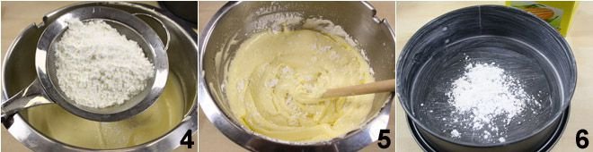 At this point, you can add the cornstarch (or potato starch) that you have sifted well beforehand 4: mix everything with a wooden spoon until you obtain a homogeneous mixture, being careful not to deflate it 5.