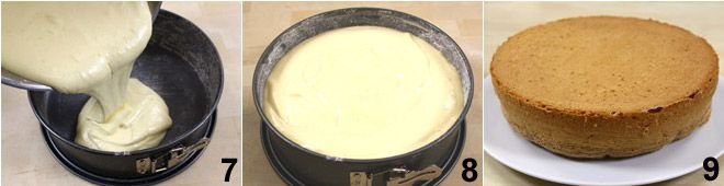 Bake the gluten-free Sponge Cake for about 35-40 minutes at 350°F in a preheated static oven without ever opening the oven in the first half hour of baking. Remove the mold from the oven and let the Sponge Cake cool in the mold before opening it.