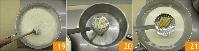 Cook on low heat until the cheese is melted 19. Then, boil the gnocchi in salted water 20, and as soon as they float, drain them directly into the sauce 21, allowing them to absorb the flavors in the pan for another minute.