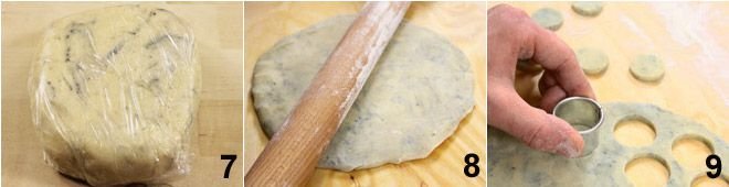 Form a loaf with the dough, cover it with plastic wrap, and place it in the refrigerator for about half an hour 8. After the resting time, roll out the loaf with a rolling pin on a floured surface to form a sheet about 0.4 inches thick 8. Now, with the help of a round cutter about 1.2 inches in diameter, cut out the cookies 9 and place them on a baking tray lined with parchment paper. Brush the surface of the cookies with cream and cover them with chopped walnuts and sesame seeds. Finally, bake in a preheated oven at 350°F for about 20 minutes. Remove the shortbreads from the oven and let them cool on a rack.