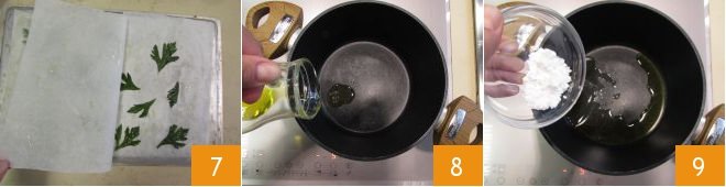 Cover with a sheet of parchment paper 4 and place another baking sheet of the same size on top 5. Bake the celery leaves in a preheated static oven at 482°F for 4 minutes. After this time, remove the baking sheet from the oven 6.