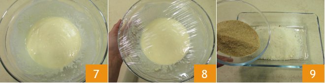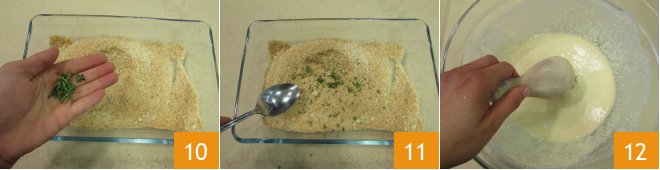 to obtain a smooth batter without lumps 7, cover it with plastic wrap, and place in the fridge for about 10 minutes 8. Then prepare the coating. In a bowl, pour the grated Grana Padano PDO, the breadcrumbs 9