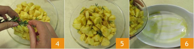 Flavor with rosemary needles 4. Mix everything 5 and transfer into a rather large greased baking dish 6.