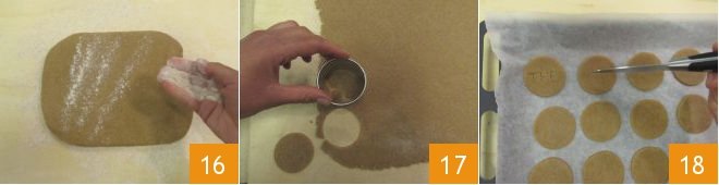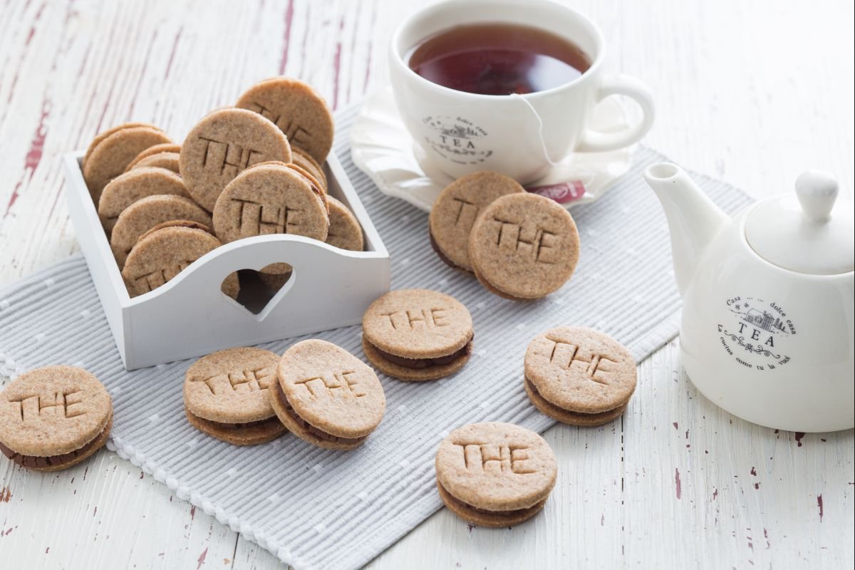After the shortcrust has cooled, lightly dust the dough with flour 16 and roll it out to form a rectangle with a thickness of 1/8 inch 16. Cut out 60 discs with a pastry cutter with a diameter of 3 inches 17, transfer them onto a baking sheet lined with parchment paper, and decorate by engraving the word “TEA” with the tip of a knife, if desired 18. Bake in a preheated static oven at 350°F for about 15 minutes. Once cooked, remove the cookies from the oven and let them cool.