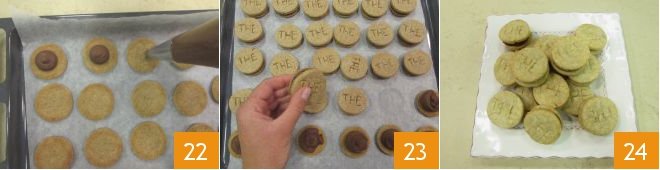 Finally, fill half of the discs with the ganache 22 and cover them with the remaining discs 23. Your green tea cookies are ready to be enjoyed 24!