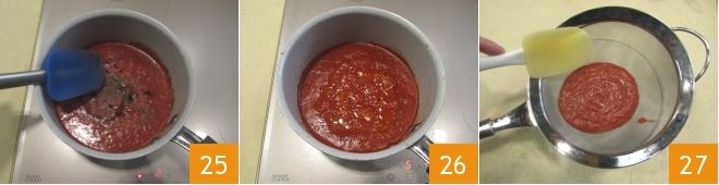Finally, stir again to combine all the ingredients. Remove the sauce from the heat and strain it with the help of a spatula and a fine-mesh strainer 27.
