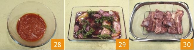 Your sauce is ready: transfer it to a small bowl 28. After the 2 hours of resting, drain the ribs from their marinade 30