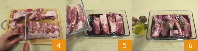 Now cut the ribs 4 and place them in the marinade, making sure to immerse them well 5. At this point, add the extra virgin olive oil 6,