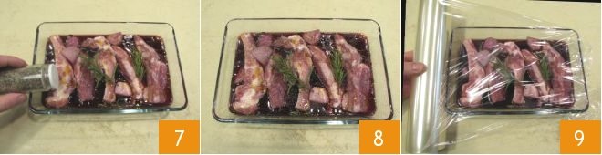 salt, and pepper 7. Your ribs are ready to rest 8: cover the bowl with plastic wrap 9 and transfer them to the refrigerator, where they should remain for about 2 hours. Remember to turn them after about an hour so that they are perfectly flavored on both sides.