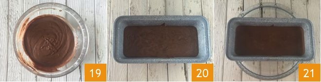 Stir until the two mixtures are well blended 19. Pour the parfait into a large loaf pan of about 10x4 inches 20 and freeze it for at least 3 hours. When the hazelnut parfait has solidified 21,