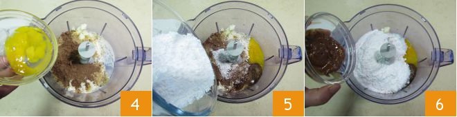 the eggs 4, powdered sugar 5, hazelnut paste 6