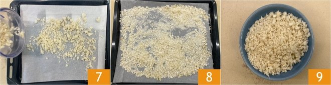 Spread the bread crumbs on a baking sheet lined with parchment paper, making sure to distribute them evenly 7. Bake in a fan oven at 250°F for 5 minutes: after this time, the panko will be light and dry but still a little soft. Let it cool completely on the tray 8, after which your homemade panko is ready to use 9!