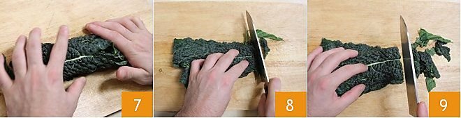 Now take two or three leaves, depending on their size, roll them up 7, and cut them crosswise into strips (8-9). Your black cabbage is ready to be cooked! Click here to discover all the recipes with black cabbage!