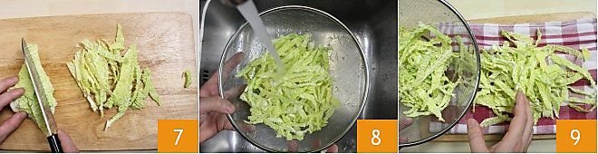 and cut each quarter into very thin strips 7. Transfer the savoy cabbage to a colander and rinse it under cold running water 8. Then dry it with a clean cloth 9. At this point, the savoy cabbage is ready to be cooked as you like or to add flavor to a salad! Click here to discover all the recipes with savoy cabbage!