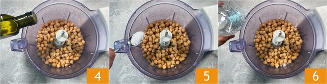 Add the extra virgin olive oil 4, salt 5, and water 6.