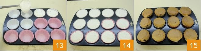 Line a 12-muffin tin with paper liners and pour the ice cream into each one using a sieve 13 or a piping bag with a plain nozzle, filling the liners to the brim 14. Bake in a preheated static oven at 338°F for about 1 hour (302°F for about 50-55 minutes if using a convection oven). Once baked 15, remove them from the oven and let them cool slightly before removing them from the tin and serving!