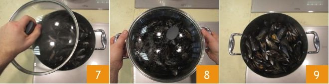 Close with the lid and let the mussels 7 completely open. Occasionally shake the pot to stir. It will take 3-4 minutes 8. At the end of cooking, remove the lid and place lemon slices and chopped parsley on serving plates. Your peppered mussels are ready: enjoy your meal 9!