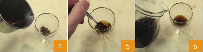 add 1 oz of whiskey 4 and mix well with a teaspoon 5. Pour 3 oz of hot moka coffee until you reach about 4/5 of the glass 6 and mix again.