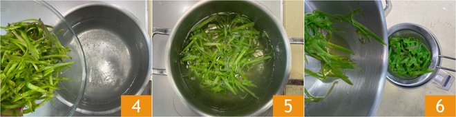 Boil the scraps obtained with the vegetable peeler in salted boiling water to obtain asparagus broth, which will take just a few minutes 4 5. Strain the broth 6 and keep 21 oz aside. Also save the scraps.