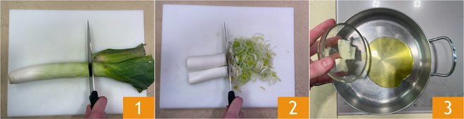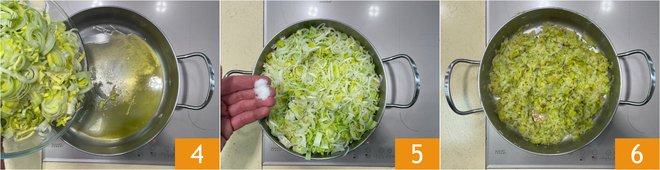 Add the sliced leeks 4, salt 5, and cook on low heat for 15-20 minutes 6.
