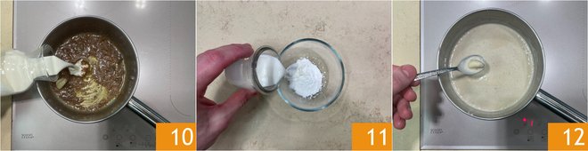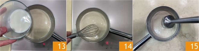 Gradually pour the starch and milk mixture 13 just enough to slightly thicken the sauce (you might not need the whole amount) 14. Blend it with an immersion blender to make it smoother 15.