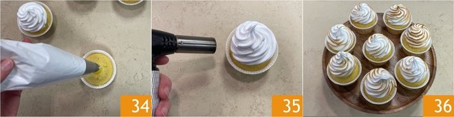 Transfer the meringue to a piping bag with a star tip and garnish the surface of the cupcakes with a nice swirl 34. Finally, torch the meringue with a kitchen torch 35. Let your lemon meringue cupcakes cool in the refrigerator for at least an hour before enjoying them 36!