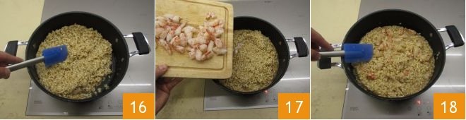 and stir 16. Also add the shrimp pieces 17 and stir again 18.