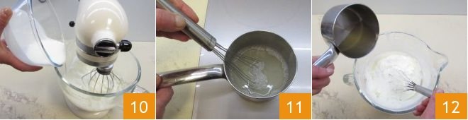 Incorporate the low-fat yogurt into the mixture 10 and continue mixing with the mixers. Meanwhile, the sheet gelatin will have softened well. Melt it in a small pan with 2 tbsp of hot water 11 and when it is completely melted, incorporate it into the cheese and yogurt mixture 12. Mix all the ingredients well with a hand mixer to obtain a smooth and creamy mixture.