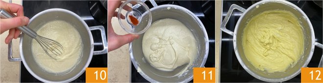 Let it thicken over the heat, whisking constantly 10. When it has reached the right consistency, add the saffron 11, stir and use your vegan béchamel immediately 12.