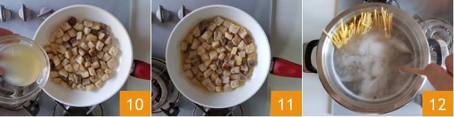 At this point, pour in the strained lemon juice 10 and let it thicken for a couple of minutes 11. Cook the linguine 12