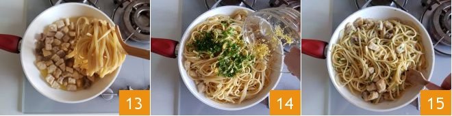 and drain them al dente directly into the swordfish-based sauce 11. Add the parsley, lemon zest 14, mix everything 15, and serve immediately!