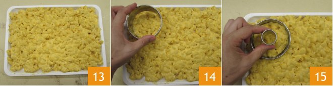 Add the grated Parmesan 10 and mix well to combine everything 11. Spread the mixture on a tray with the help of a spoon 12, then refrigerate to set for at least 3 hours.