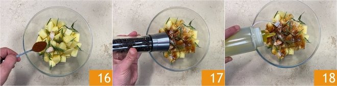 Add the remaining paprika 16, salt, pepper 17, and oil 18.