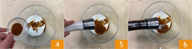 Also add half of the paprika 4, salt 5, and pepper 6.