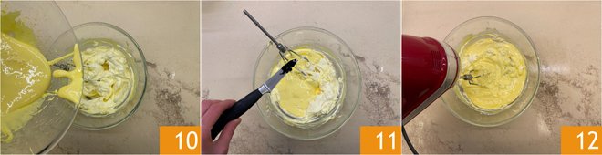 Then add the rest and work with the electric whisk until you obtain a smooth cream 10. Flavor with the seeds of the vanilla bean 11 and blend again to infuse well 12.