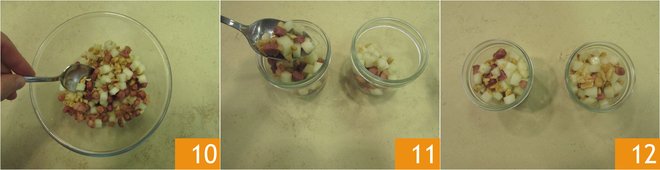 Mix everything to flavor 10, then fill small appetizer cups 11 and serve 12.