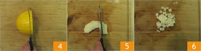 Meanwhile, take care of the melon: cut it in half, remove the seeds, then cut it into slices 4. Remove the rind and then cut the slices first horizontally and then vertically 5 to obtain cubes about 1/2 inch 6.