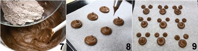 Place the mixture in a piping bag and, on a baking sheet lined with parchment paper, create mounds of batter about 1.5 inches in diameter, well spaced apart 8 (you can also use a spoon), they will be Mickey and Minnie's face. Above each mound, make two smaller ones (the ears), spacing them about 0.5 inches from the larger one 9. Bake the treats for 10 minutes at 350°F, after this time remove them from the oven and let them cool.