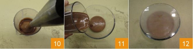 Drain the gelatin and add it to the saucepan 7. Stir with a whisk to dissolve it completely 8 and pour it into the chocolate mixture 9. Stir again with a spatula 9.