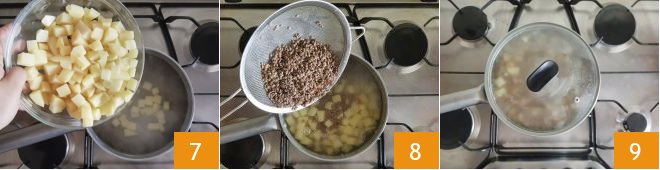 Place the potatoes in a pot with boiling water 7. Rinse the lentils, drain them, and add them to the pot with the potatoes 8. Salt and cook for about 20 minutes with the lid on 9.