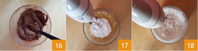 Mix again with a spatula until you obtain a smooth mixture 16. Transfer the egg whites and remaining powdered sugar into a bowl 17. Beat with an electric mixer until the egg whites are well whipped.