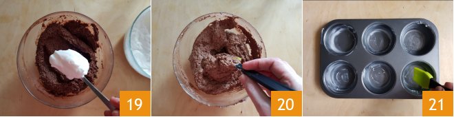 Add the egg whites to the batter a little at a time 19, mixing with a spatula from bottom to top until you obtain a smooth mixture 20. Butter 6 molds of 4 inches in diameter 21
