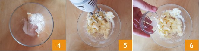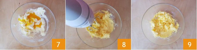 the egg yolks 7 and beat for another 5 minutes 8, until you have obtained a smooth mixture 9.